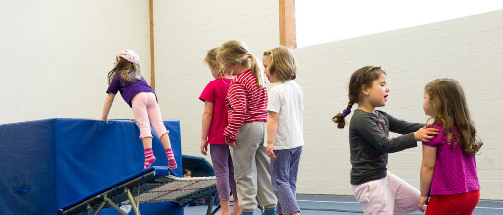 Die 4 bis 6-jährigen Kinder dürfen bei diesem Kinderturnen-Angebot unsere Turngeräte kennenlernen und ausprobieren. Sie dürfen klettern, springen, laufen und kriechen. Wir machen lustige Ballspiele und Spiele zur Förderung der motorischen Fähigkeiten unserer Kleinen.