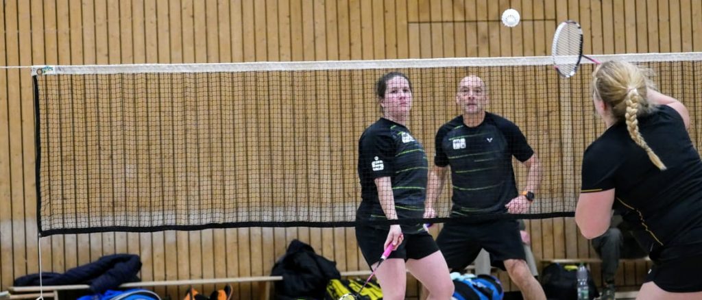 Es ist nicht so, als hätten wir uns durch die Absage der Spielverlegung einen großen Vorteil verschafft. Mit Mannschaftsführerin Heike, Gerrit und Tobi fielen weiterhin wichtige Stammkräfte aus. Britta stellt sich dieser Herausforderung in Ihrer Vertretungsrolle unbeeindruckt von Spiel zu Spiel aufs Neue. Dabei können wir festhalten, dass sie das ganz hervorragend löst und das Team absolut bereichert. Heute sollte sie an der Seite von Allzweckwaffe André im Mixed leider glücklos bleiben – Mit 13:21 und in der Verlängerung des zweiten Satzes (21:23) unterlagen sie nach großem Kampf und sicherten den Gästen einen verdienten Ehrenpunkt. Für André war es die erste Niederlage in dieser Saison, was eine ziemlich gute Quote darstellt.